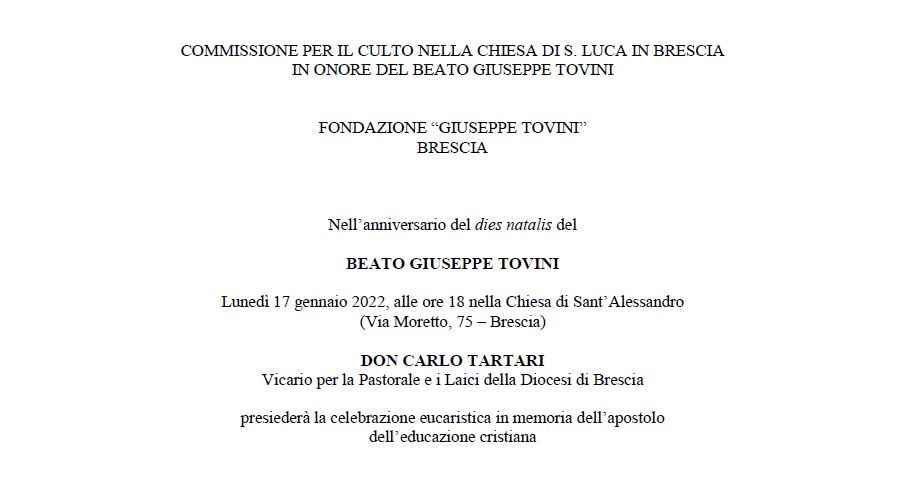 16/01/2025 - SANTA MESSA IN RICORDO DEL BEATO GIUSEPPE TOVINI